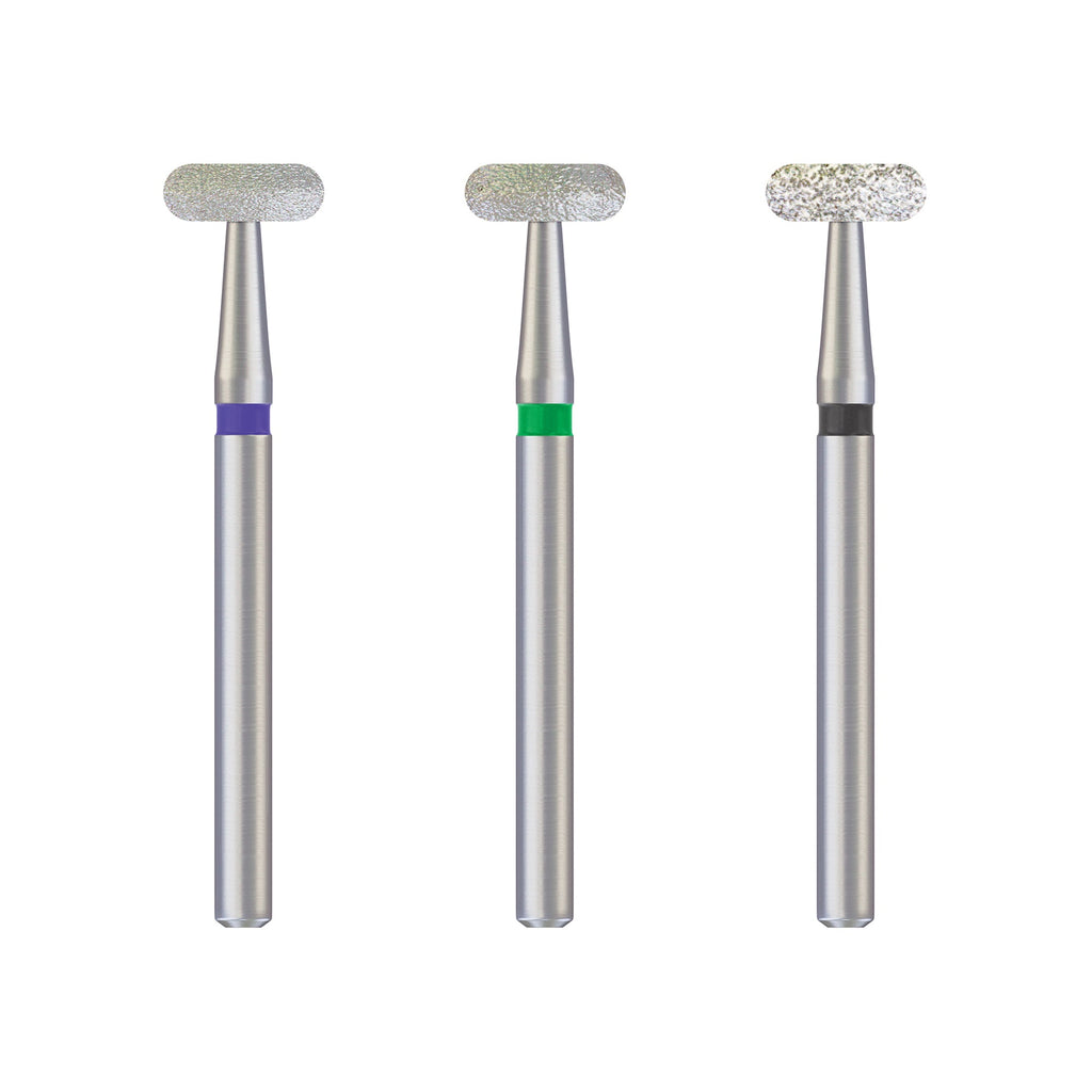 Each bur features industrial-grade diamonds precisely bonded to a high-quality stainless steel shank, ensuring unparalleled cutting efficiency and longevity. The precisely engineered diamond surfaces deliver consistent results with minimal heat generation and vibration, enhancing patient comfort and procedural outcomes. The bur shank has an FG (friction-grip Ø1.60mm) universal connection type.