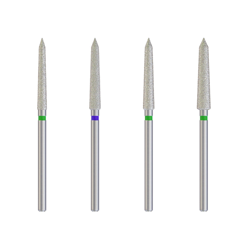 Each bur features industrial-grade diamonds precisely bonded to a high-quality stainless steel shank, ensuring unparalleled cutting efficiency and longevity. The precisely engineered diamond surfaces deliver consistent results with minimal heat generation and vibration, enhancing patient comfort and procedural outcomes. The bur shank has an FG (friction-grip Ø1.60mm) universal connection type.