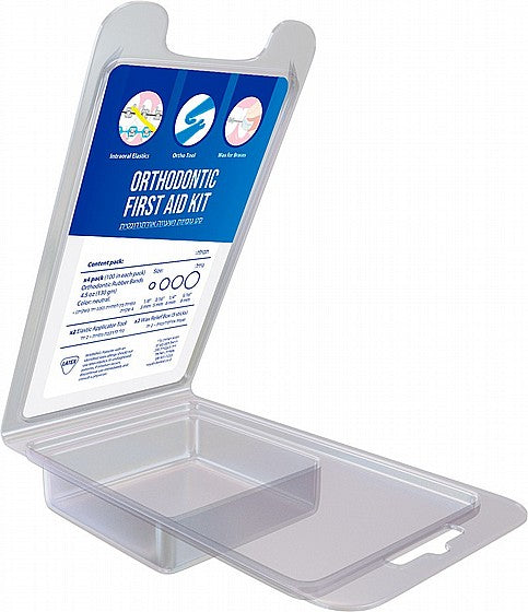 Our OrthoAid Home First Aid Kit is a simple solution for orthodontic emergencies when an orthodontist is not available. This kit is intended for home use and is ideal for vacations, office settings, outdoor activities, and more. This kit allows you to quickly replace intraoral rubber bands and apply dental wax to braces, relieving irritation and discomfort. The kit includes elastic rubber bands in a variety of sizes to meet a variety of orthodontic needs. The bands are made of high-quality medical latex and do not require talc. The included Orthodontic Vax relaxes gums and reduces inflammation caused by braces or dental flossing. It includes pocket boxes with 5 strips for protection and comfort. Two tools are included to aid in the assembly of intraoral elastic rubber bands. The kit is made in the United States, ensuring high quality and dependability for at-home orthodontic care. OrthoAid is your essential home orthodontic care companion because it is convenient, user-friendly, and versatile.